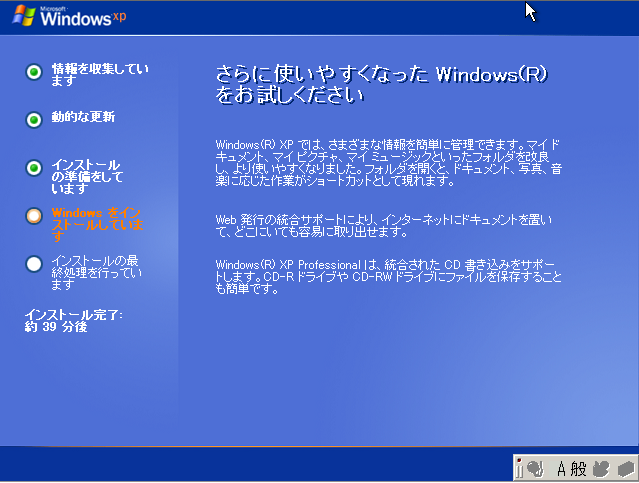 うちにあるXPはいまだにSP2なので、入れたあとにアップデートしなければなりません。